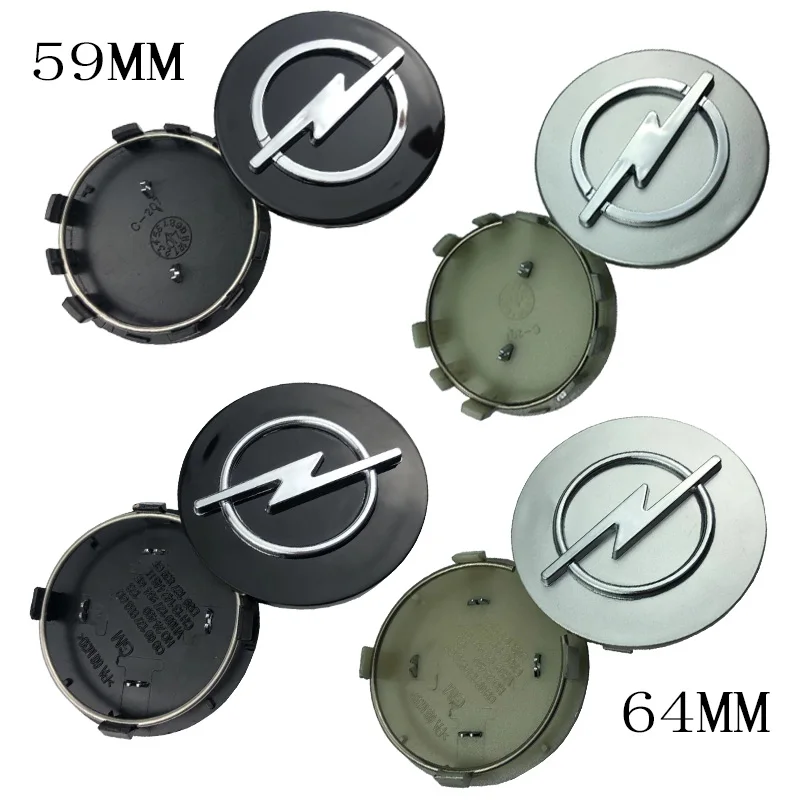 Name: Tapas de cubo de rueda de Opel, Logo de insignia, bordes de emblema a prueba de polvo, accesorios de estilo de coche, negro y plata, 59mm, 60mm, 64mm, 4 Uds.